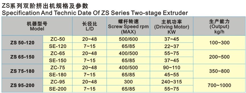 ZS系列雙階混煉擠出機由兩階組成,第一階是同向雙螺桿擠出機,第二階是單螺桿擠出機。